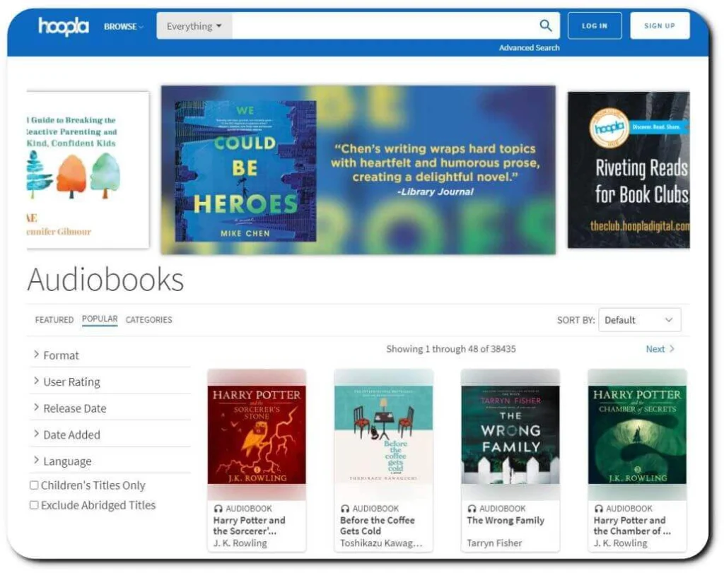 Hoopla is free to use, and the majority of the services it offers may be accessed without any problems. We cannot, however, claim that it is a full-fledged Audible substitute. Similar to Overdrive, Hoopla allows you to borrow and rent books from a variety of local libraries.