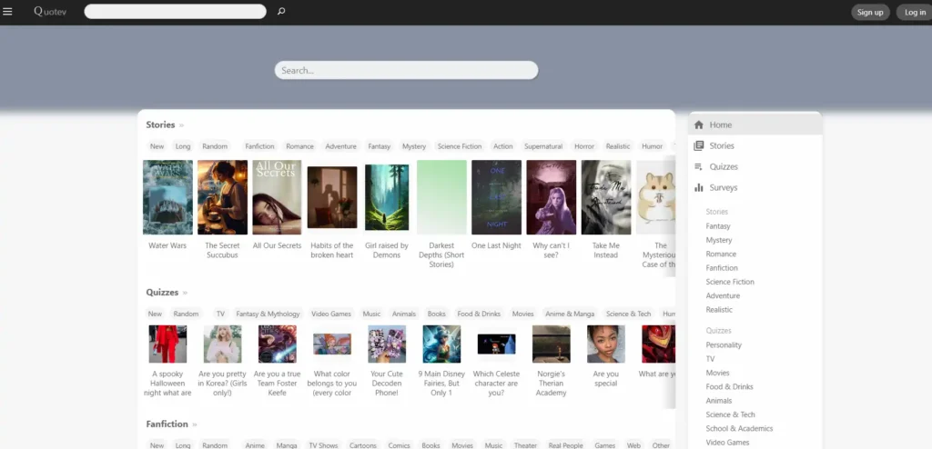 - Easy Navigation: Quotev’s user-friendly interface ensures a seamless experience for readers. Navigating through fanfic stories, novels, poems, trivia, and other content is a breeze, enhancing overall accessibility.