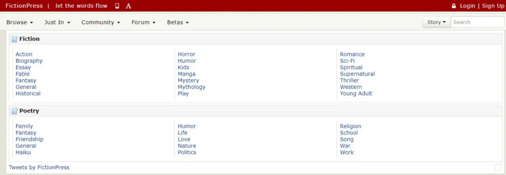 - Expansive Categorized List: Much like its counterpart, FictionPress offers an extensive and well-categorized list of stories. Readers can explore various genres and themes, ensuring a diverse and captivating selection.