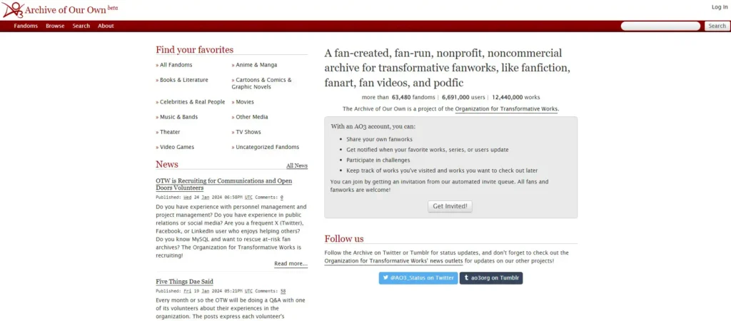 - Inclusive Fandom Exploration: AO3 welcomes all fandoms, making it an inclusive space where fans can explore a vast array of fanfic stories. The platform’s versatility caters to readers with diverse preferences and interests.