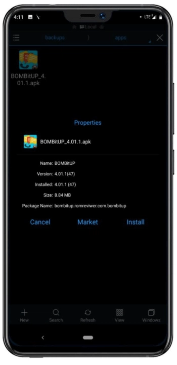 Step 5: Locate the folder containing the BombitUP apk file that you previously downloaded in this location.