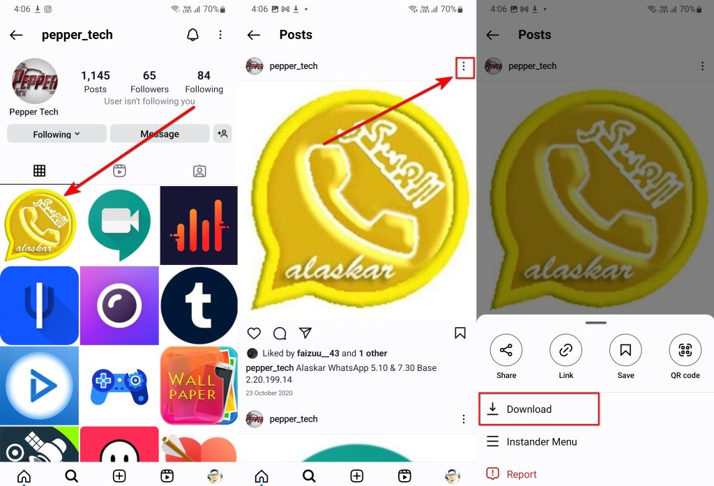 - Save: Saving a picture on Instagram Plus is a simple process. Tap the three dots to bring up the option to save the photo. Alternatively, you can enable a download option in the Plus Settings by double-tapping the image.