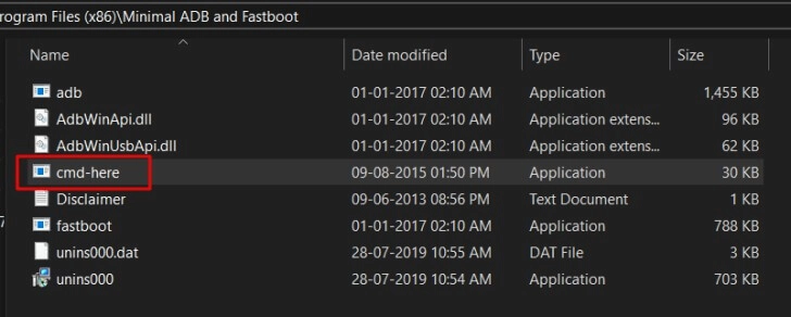 - Fastboot and ADB minimal, and then use the context menu to execute cmd-here as administrator.
