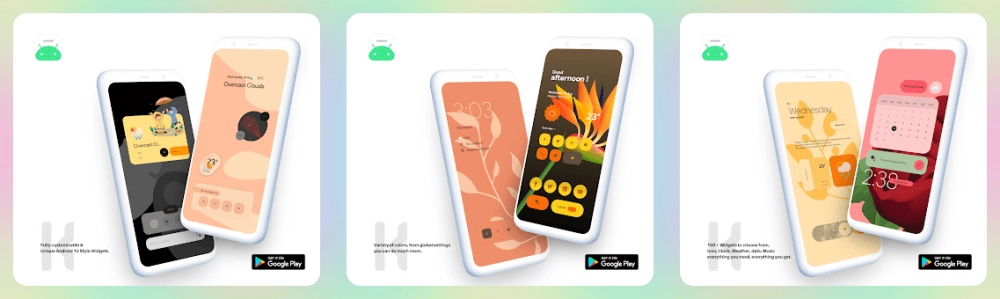 This widget set includes interactive widgets as well as clocks, quirky music, and attractive weather widgets. Every widget has rounded edges, which is the theme of Android 12. This is the main selling point. In addition to widgets, it also has the newest themes and customised widgets that you can use to give your smartphone a unique home screen appearance.