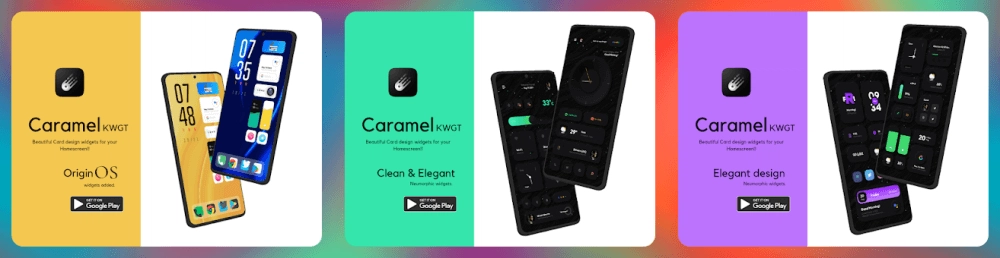 If you like neomorphic designs and want to create a home screen centred on that subject, caramel kwgt is yet another fantastic choice. It makes excellent use of card-style widget designs to enhance the overall aesthetic.