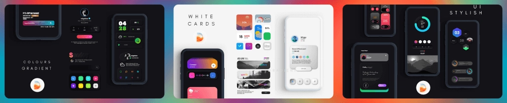 This widget pack functions and appears best when your home screen is decorated with gradient- or material-based wallpaper. The widget pack now contains 45 widgets, however that number might rise in the future.