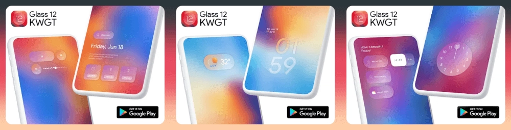 The issue of those distracting widget programmes that prevent you from utilising your preferred background wallpapers is resolved by Glass 12 KWGT. Usually, the widgets are too pronounced or fuzzy to mix in with the background on the home screen, but not with this widget pack. It features several widgets that can take the colour from your background and use it in their creation.