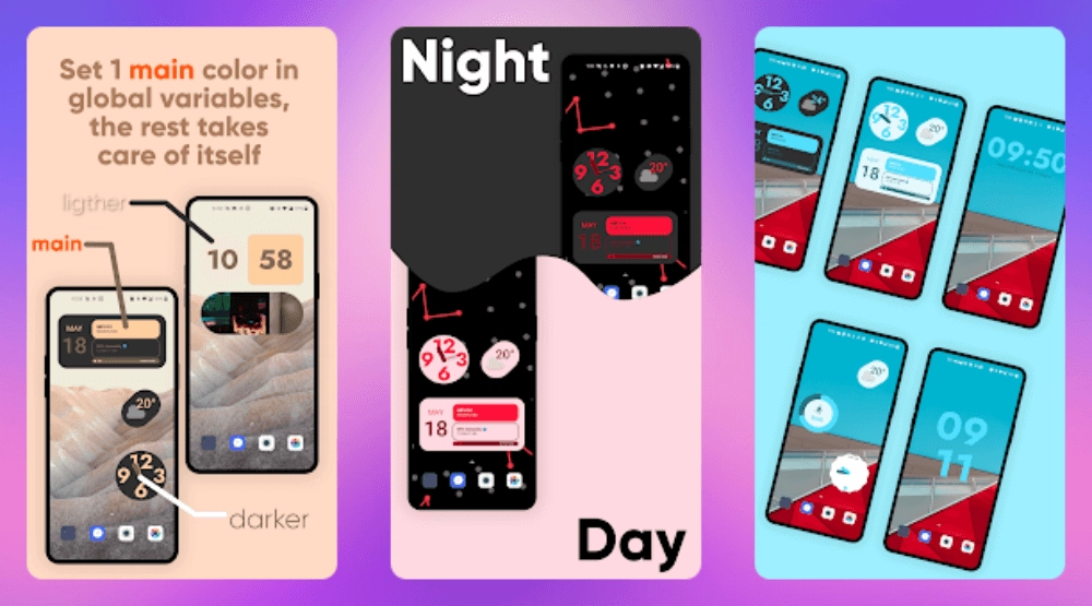Choose which premium KWGT widgets you want to download for your Android device. To let us know which one you liked and downloaded, you may either test them all or choose the one that most appeals to your eye.