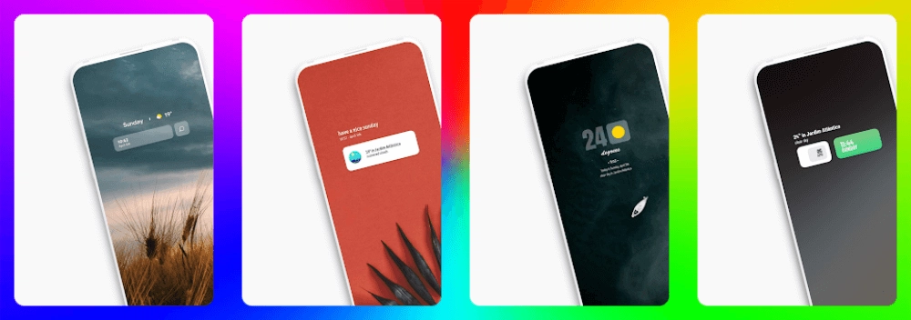 The term “rainbow” immediately conjures up a vivid picture in your head. This is the home screen modification that Rainbow KWGT will make. Your home screen will be covered with colourful widgets. The software includes various more widgets in addition to the standard search, clock, and weather widgets.