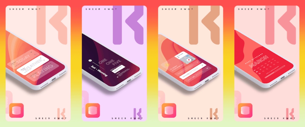 The Sheer widget turns a blind eye to the current trend of widgets with vibrant colours and patterns. The feature of this KWGT widget is its attractive collection of transparent widgets. You may get the finest effects without changing the hue by pairing it with any fading wallpaper.