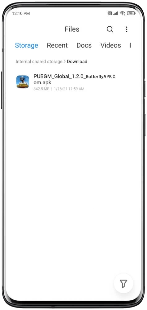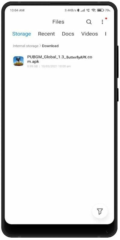Step 1: Save the PUBGM_Global_2.4.0_ButterflyAPK.com.apk file to the internal storage of your smartphone.