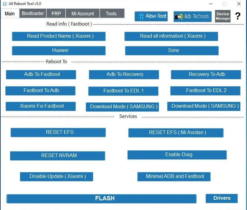 Welcome to the world of All Reboot Tool, a free and powerful solution that simplifies your Android device management by eliminating the need for manual command input. This tool is based on CMD commands and comes with a comprehensive set of features specifically designed for Qualcomm processors and Xiaomi devices. Say goodbye to the hassle of manually typing or copying and pasting commands from text documents. All Reboot Tool has got you covered with its user-friendly interface and an array of unique functions.