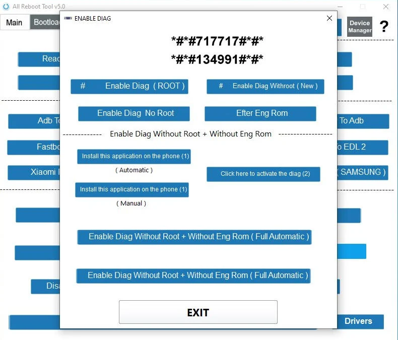 - Diag activation without root and without the need to flash the Eng ROM.