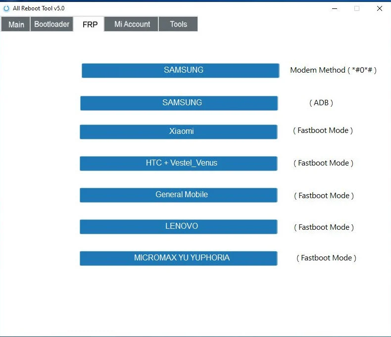 - Frp bypass for Samsung phones via emergency calls using the Modem Method #0#.