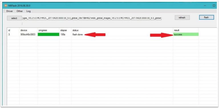 Step 6: When your phone appears in the MI Flash Tool window as connected, click ‘flash’ to begin the flashing process.