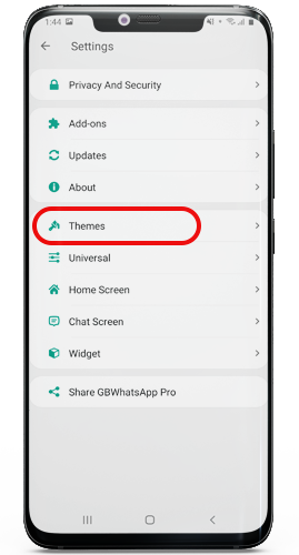 3. Go to your WhatsApp Plus application, it doesn’t matter what copy you are using, and from Settings click on Themes.