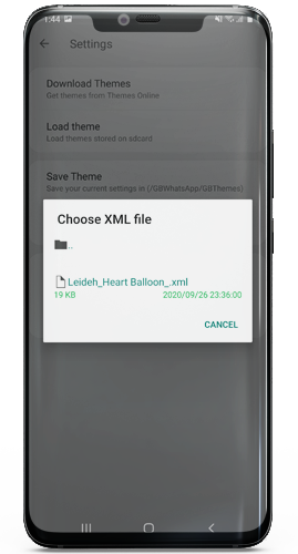 5. This will open all the files on your phone, remember the location of your theme and choose it, make sure the file format is XML when you click on it.