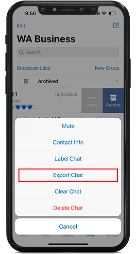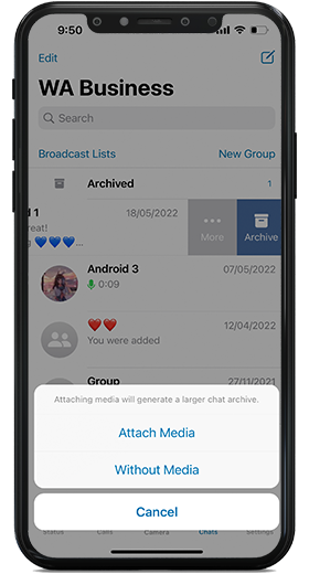 - Open WhatsApp and select the chat you want to transfer. Swipe the chat to the left and click on “More”.
