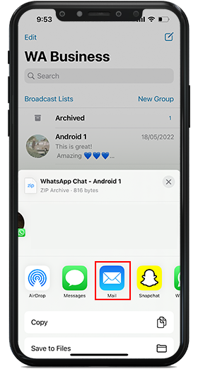 - Now the last step is to write the email you want to transfer WhatsApp chat to.
