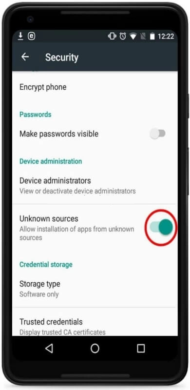 Step2: Scroll down and turn on “Unknown Sources” It could say “Allow Third-Party” on certain devices.