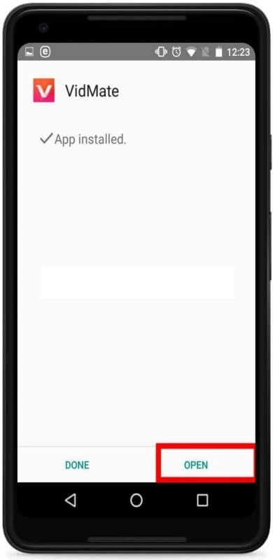 Step 4: Congratulations! You have successfully installed Vidmate HD Downloader App on your device. Now tap on Open to launch the app.