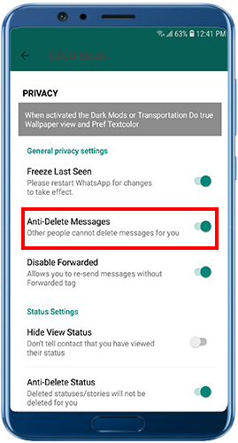Only in WhatsApp Plus, you can prevent others from deleting the messages, even if they deleted any message you will still be able to see it, this feature doesn’t exist in the original WhatsApp.