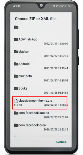 - Locate the downloaded theme file on your device and select it. Whether it’s a zip or XML file, WhatsApp Plus will recognize and apply the theme.