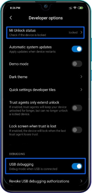 - Step 3: On your Xiaomi smartphone, enable USB Debugging and OEM Unlock:
