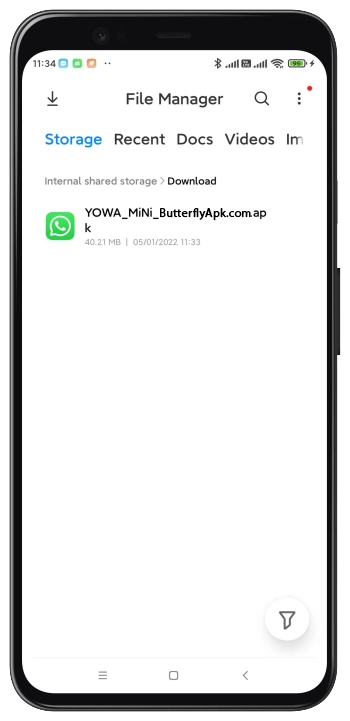 Step 5: Click the YoWhatsApp_MiNi_ButterflyAPK.com.apk file to continue.