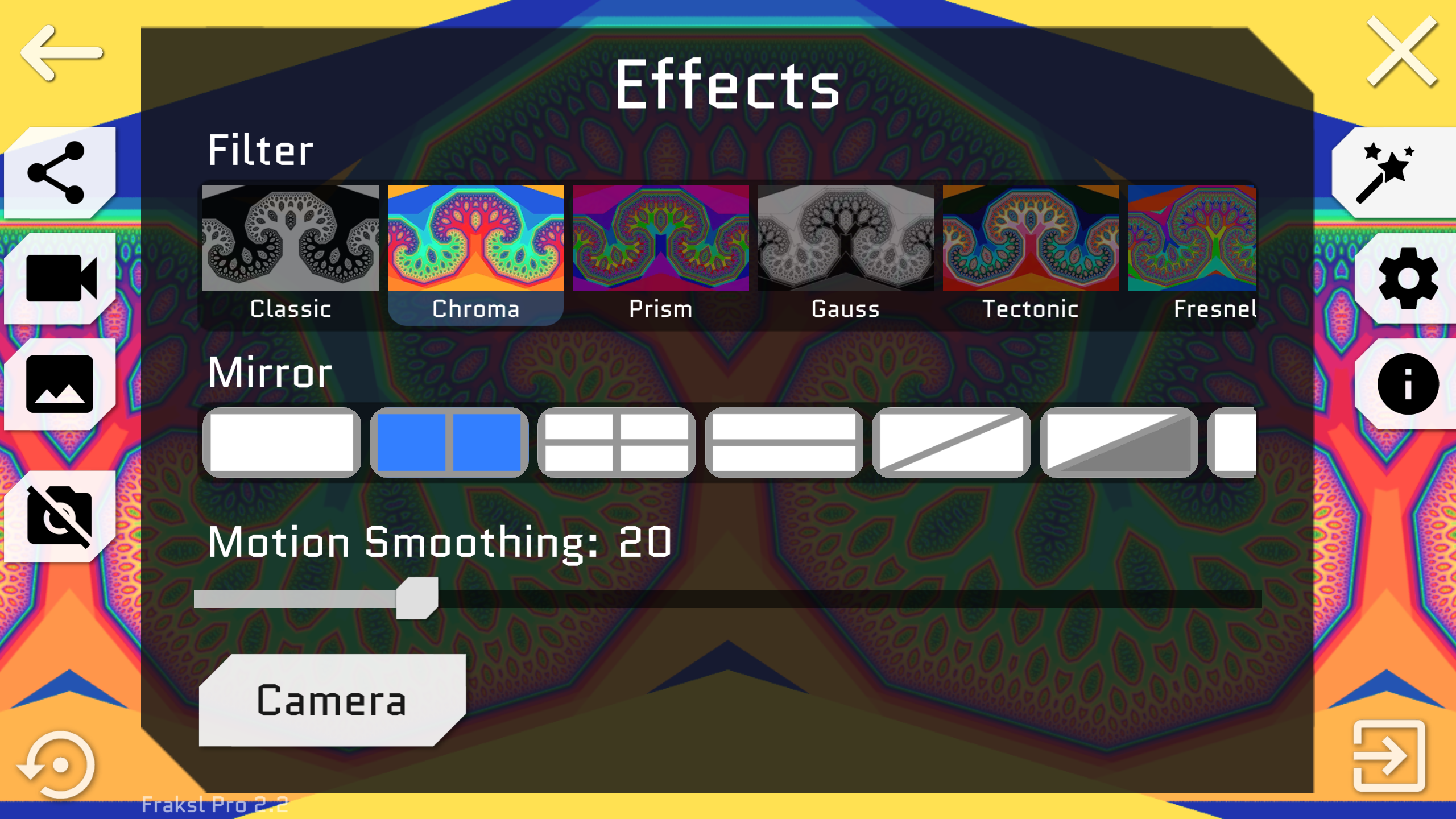 - Wide Variety of Filters and Mirrors: With Fraksl, users have access to a diverse range of filters and mirrors to enhance their artwork. From colorize to glow to invert, the app offers numerous options to customize and refine fractal patterns, allowing for endless creativity.
