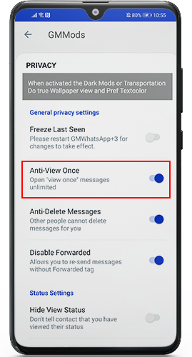 - Anti-Delete Option: Activate the anti-delete option in GMWhatsApp to prevent senders from deleting messages. This ensures that you have a record of all the messages you receive.