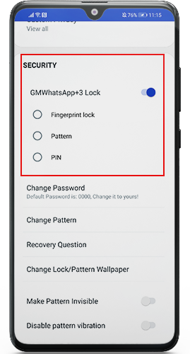 - Fingerprint, Pin, and Pattern Lock: GMWhatsApp provides multiple options to secure your chats with fingerprint, pin, or pattern locks, ensuring that only authorized users can access your messages.