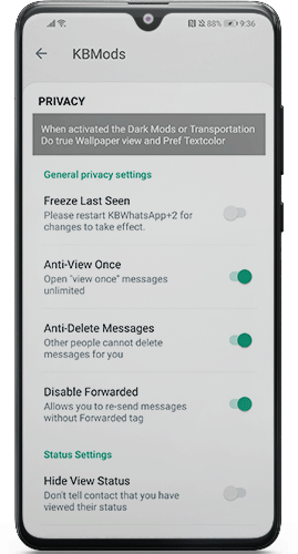 - Customization Options for Status Page: KBWhatsApp provides you with the option to hide the Save and Mark Seen buttons on the status page. This customization feature allows you to personalize your viewing experience and focus solely on the status content.