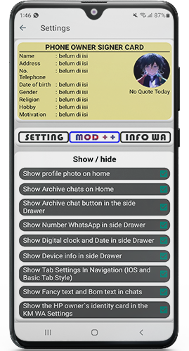 Show Mods KM WhatsApp: Tailor your main interface by controlling the display of specific features, offering a personalized WhatsApp experience.