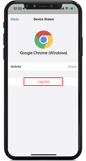 To log out of any device just click on the device you want to log out from and select “Log Out”.