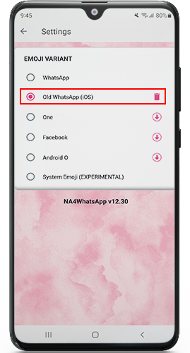 IOS Emoji Style: Love the look of iOS emojis? Switch to IOS Style emojis easily in NA Settings > Change Emojis Variant. You can also download Fouad WhatsApp iOS for an iPhone theme.