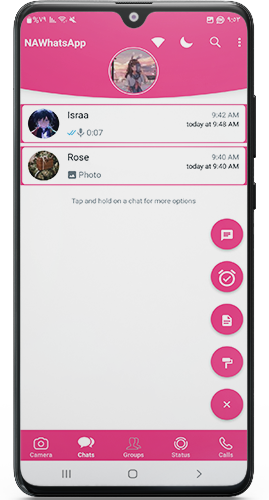 - Customization Options: NA4WhatsApp Pink allows users to customize the interface with new styles for contact information, application icons, and notification icons.