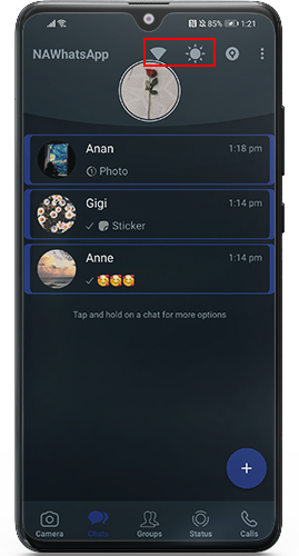 NAWhatsApp offers a sleek and stylish interface with the option to enable dark mode. Dark mode reduces eye strain in low-light environments and gives a sophisticated look to the app. You can easily switch between light and dark modes for a personalized experience.