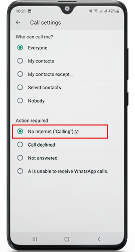 With NAWhatsApp, you have the option to reject calls, which sends a message to the caller indicating that you are not currently connected to the internet. This feature helps manage your availability and lets others know when you are unavailable for calls.