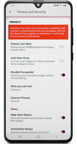 OBWhatsApp places a strong emphasis on privacy. In addition to the aforementioned online status control, OBWhatsApp offers a range of privacy-focused options to safeguard your personal information. With OBWhatsApp, you can enjoy peace of mind knowing that your conversations and data are protected.