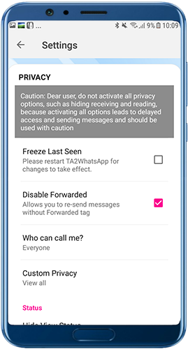 TAWhatsApp prioritizes privacy and allows users to customize their visibility. You can hide your last seen and online status, ensuring that your activity remains discreet. Furthermore, features like covering up the “forward message” indicator and avoiding removal of status updates and communications add an extra level of privacy control. TAWhatsApp also enables you to hide the second tick, “typing,” and “recording” indicators within blue ticks, ensuring your interactions remain confidential. With the ability to choose who you want to call from the list, you have full control over your communication choices.