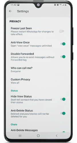 - Gallery Privacy: WhatsApp Aero allows users to hide media files from their device’s gallery, providing an added layer of privacy and security.